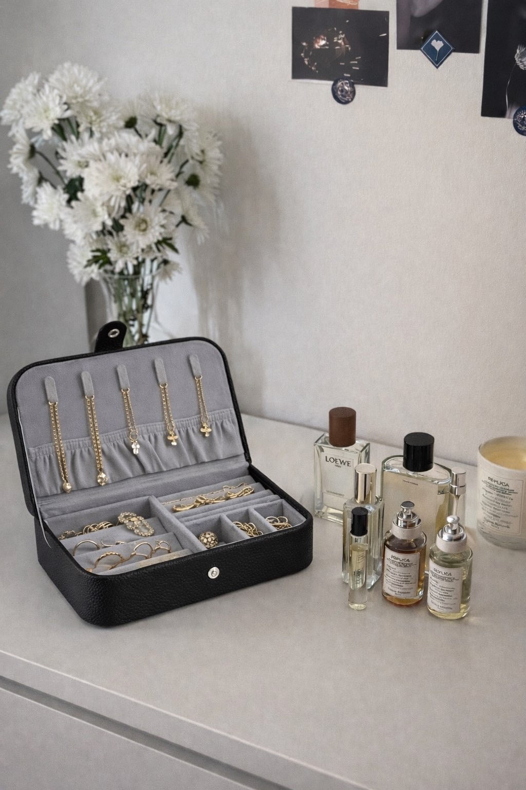 Die Schmuckbox ist ideal für Reisen, Ausflüge oder die stilvolle Aufbewahrung zu Hause. Sie hält Schmuck übersichtlich organisiert und jederzeit griffbereit.
